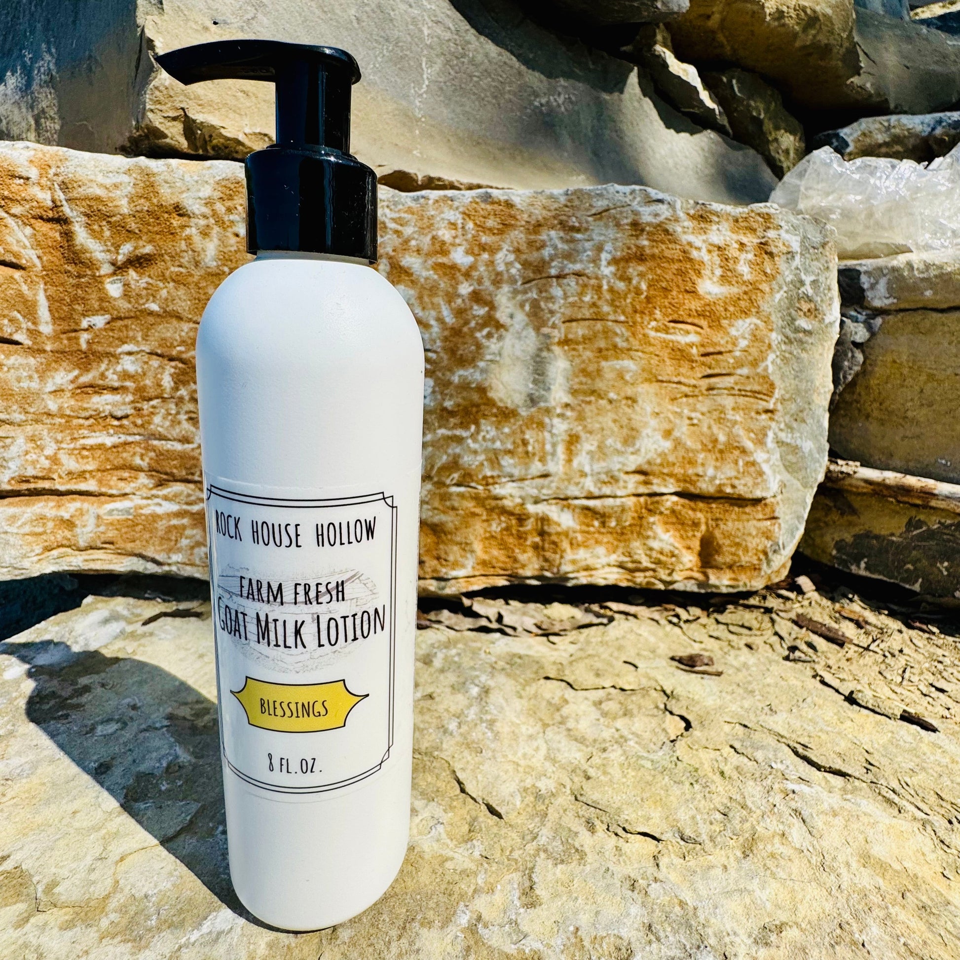 Indulge in the nourishing benefits of our farm-fresh goat milk lotion. Made with milk from our small herd of goats, it is enriched with shea butter, coconut oil, cocoa butter, vitamin E, and of course, goat milk.